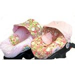 Bubbledots Pink Reversible Infant Car Seat Cover This hip an stylin' infant car seat covers is just adorable! Our Infant Carrier Covers are completely reversible and come with a matching hood to replace your hood. Features include matching shoulder strap covers, a thin padding and a binky pocket for that something special. We positioned the pocket so that Mom & Dad could reach it safely when something soothing is needed.