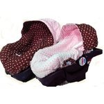 Chocolate Pinkadot Reversible Infant Car Seat Cover This hip an stylin' infant car seat covers is just adorable! Our Infant Carrier Covers are completely reversible and come with a matching hood to replace your hood. Features include matching shoulder strap covers, a thin padding and a binky pocket for that something special. We positioned the pocket so that Mom & Dad could reach it safely when something soothing is needed.