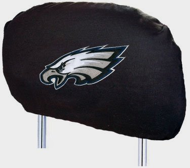 The Philadelphia Eagles NFL Football Team Car Seat Head Rest Cover. Show your team pride while cruising along with these great head rest covers! Fits all standard size head rests, made of cotton knit material, and includes small storage pouch on the back. A great gift for an occasion!